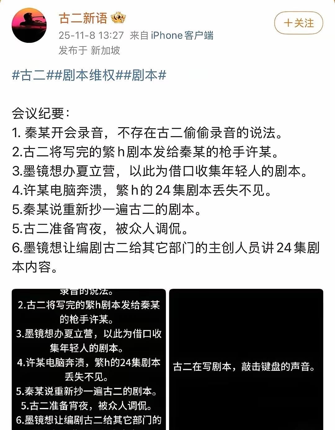 14. 第二段录音则聚焦于编剧秦雯涉嫌剽窃原创剧本的核心问题。
